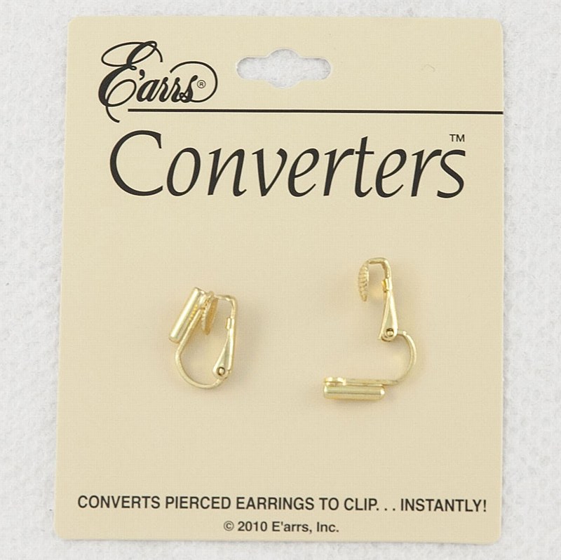 Converts pierced earrings to clip by inserting post of the earring into the Converter and bending gently at a right angle.